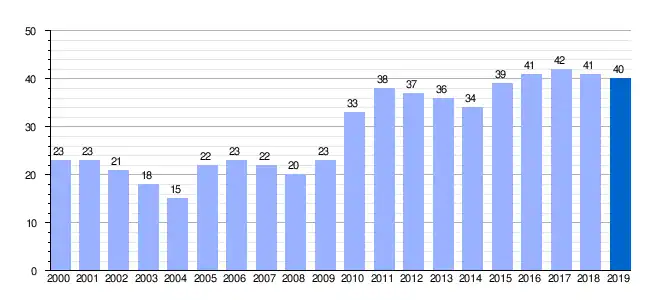 | Gráfica de evolución demográfica de Carrascal de Velambélez[4] entre 2000 y 2019 |