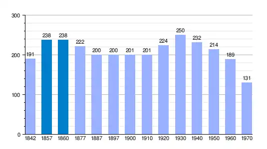| Gráfica de evolución demográfica de Carrascosa de Henares[4] entre 1842 y 1970 |