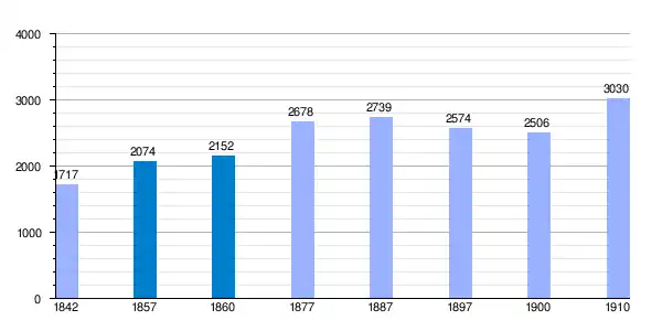 Gráfica de evolución demográfica de Carril[4] entre 1842 y 1910