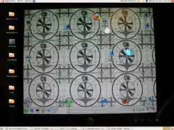 - ↑ Kay, M. S. (enero de 1949). «The Television Test Pattern». Radio & Television News (Ziff-Davis) 41 (1): pp. 38-39, 135-136. "Every television station, prior to its actual broadcasting period, transmits a test pattern for the purpose of permitting set owners to adjust their receiver controls for optimum reception." The article also states that television programming (in 1949) was only a few hours each evening. The "Indian Head" test pattern was built into the RCA "Monoscope" tube, a 2F21, which acted as a complete replacement for the TV camera.