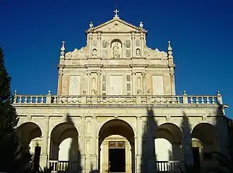 A fines del siglo XVII la Casa de Braganza, ya en el trono de Portugal, restauró los edificios (1694) y enriqueció la iglesia del monasterio. Al rey Pedro II (1648-1706) se debe el pórtico y la admirable fachada exterior. Es una fachada en estilo renacentista, hecha en mármol, cuya autoría se atribuye a los arquitectos Felipe Terzi (1520-1597) y Giovanni Vincenzo Casali (1539-1593).