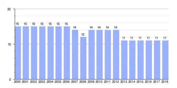 | Gráfica de evolución demográfica de Casás entre 2000 y 2018 |