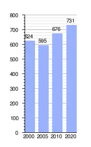 En 2020 registró una población de 731 personas, lo que corresponde al 1.99 % de la población municipal.[7] De los cuales 348 son hombres y 383 son mujeres.[7]