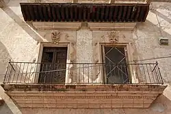 El edificio está construido con muros de piedra con mamposteo ordinario, cubierto con aplanados y presenta contrafuertes robustos de forma rectangular en planta y circular en el caso de tres esquinas. Debido a la accidentada topografía del terreno, el edificio varía en alturas desde los 10 hasta los 12.5 metros de altura. Las ventanas de la planta baja son estrechas y tiene cuatro puertas de acceso a las distintas dependencias interiores. La planta alta tiene vanos con balcones en la fachada principal y dos laterales. Estos balcones tienen un sistema de voladizo consistente en la prolongación de las vigas interiores del entrepiso hacia el exterior, soportadas por molduras de piedra. El ingreso principal, que mira al norte, es una portada monumental con un gran vano con marco almohadillado y rematado con cornisa sobre la cual se localiza un águila bicéfala tallada en piedra. En el mismo eje de la portada, ascendiendo, se encuentra un vano sencillo con faldón a la manera de guardamalleta y en el remate, encima del vano, un gran nicho flanqueado por dos pilastras churriguerescas que sostienen una cornisa en medio círculo. En el interior del nicho se encuentra un escudo de España, con cuatro campos de leones y castillos, rematados probablemente por una corona que desapareció, todo labrado en bajorrelieve en piedra de la región.