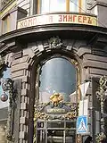 El edificio fue diseñado por el arquitecto ruso Pável Suzor para la filial rusa de la compañía Singer de máquinas de coser. La idea inicial de la compañía era la de construir un rascacielos similar al Singer Building de Nueva York, sede de la compañía que por aquel entonces estaba en construcción. Sin embargo, las leyes de San Petersburgo no permitían ningún edificio con una altura de la cornisa superior a 23,5 m; ningún edificio podía ser más alto que el Palacio de Invierno. A pesar de la restricción de altura, el arquitecto logró una solución elegante y notable. El edificio consta de seis plantas coronadas por una torre de bronce y cristal en cuya cima se encuentra una bola acristalada de 2,8 m de diámetro. Las esculturas del edificio fueron creadas por el escultor estonio Amandus Adamson.[1]