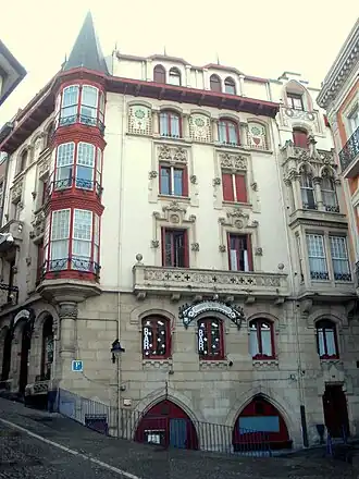 Fue construida por el arquitecto Leonardo Rucabado en 1910. El edificio tiene una clara influencia del modernismo catalán y del estilo neogótico alemán, muy propio de principios del siglo XX en Europa.