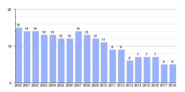 | Gráfica de evolución demográfica de Casal de Abaixo entre 2000 y 2018 |