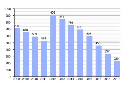 | Gráfica de evolución de la deuda viva del ayuntamiento entre 2008 y 2019 |