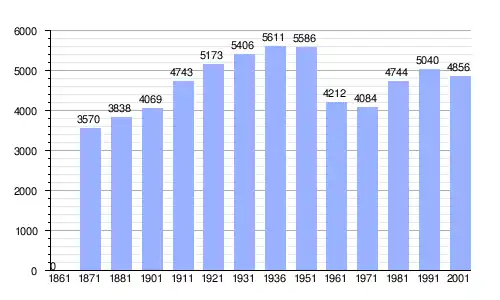 | Gráfica de evolución demográfica de Casale di Scodosia entre 1861 y 2001 |