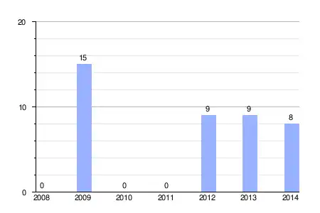 | Gráfica de evolución de la deuda viva del ayuntamiento entre 2008 y 2014 |