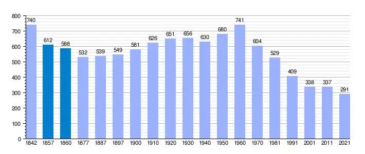 | Gráfica de evolución demográfica de Casas de Don Gómez[4] entre 1842 y 2021 |