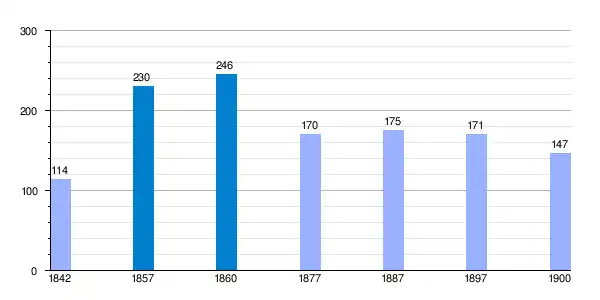 | Gráfica de evolución demográfica de Casasola de la Encomienda[6] entre 1842 y 1900 |