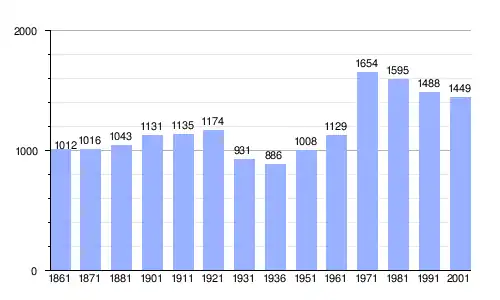 | Gráfica de evolución demográfica de Cascinette d'Ivrea entre 1861 y 2001 |