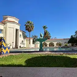 Con un estilo misional californiano, Ia fachada frontal del hotel semejaba una espadaña; en el centro tenía un gran patio cuadrangular llamado "Patio de las Palmeras", rodeado de portales con arcos de medio punto. Los clientes podían hospedarse también en una serie de bungalós -cuyo diseño estaba basado en variantes del estilo neocolonial- dispuestos todos en forma de una "villa" en medio de sendas peatonales y frondosos jardines.