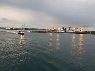 ![]() Puerto Quetzal en el Océano Pacífico, donde se encuentran muchas aduanas guatemaltecas. | ||