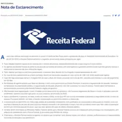 - ↑ «Nota de Esclarecimento». Receita Federal (en portugués de Brasil).