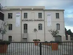 - Ecomuseo-Harinera (Ecomuseu-Farinera). Está situado en la antigua harinera, construida en 1905 sobre el molino medieval del Medio (Molí del Mig), y que cuenta con tres plantas. En su interior puede verse la antigua maquinaria, en gran parte de madera y parcialmente renovada en el siglo XX. La exposición, adscrita al Museu de la Ciència i de la Tècnica de Catalunya, permite conocer la transformación del trigo en harina según el sistema austrohúngaro.[29]