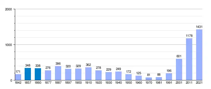 | Gráfica de evolución demográfica de Castellnou de Bages[3] entre 1842 y 2021 |