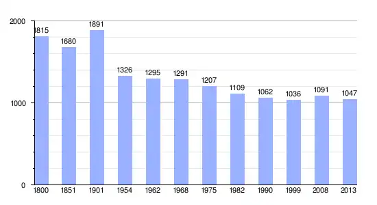 Los datos demográficos contemplados en este gráfico de la comuna de Castelnau-d'Auzan[3] se han cogido de 1800 a 1999 de la página francesa EHESS/Cassini, y los demás datos de la página del INSEE.[4]