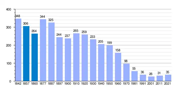 | Gráfica de evolución demográfica de Castilfrío de la Sierra[7] entre 1842 y 2021 |