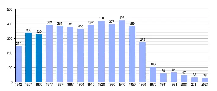 A mediados del siglo XIX, el lugar tenía contabilizada una población de 246 habitantes.[1] La localidad aparece descrita en el sexto volumen del Diccionario geográfico-estadístico-histórico de España y sus posesiones de Ultramar de Pascual Madoz de la siguiente manera: