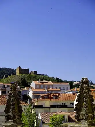 Ocupa una posición dominante al noroeste sobre la población, en la margen izquierda del río Baça. Desde sus ruinas se contempla una buena vista de la ciudad, inclusive su famoso monasterio, los campos circundantes y la sierra de los Candeeiros.