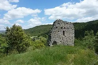 Queda solamente los restos de un muro, fundamentado sobre las rocas y encarado a tramontana. En el centro del muro hay abierto un ventanal aspillera. El muro tiene unos 6,80 m de largo, 5 m de altura en el punto más alto y un espesor de 70 cm. El aparato constructivo, de aspecto muy ordenado, es de sillares no muy grandes bien escuadrados en dos hiladas, una externa y otra interna. Estos sillares se disponen en hileras horizontales unidos con un mortero de color grisáceo muy compacto, compuesto de arena muy fina mezclada con cal y grava.