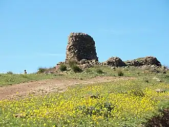 El sitio está dominado por los vestigios de un edificio rectangular, rodeado por tres líneas de fortificaciones en avanzado estado de ruina.[2]