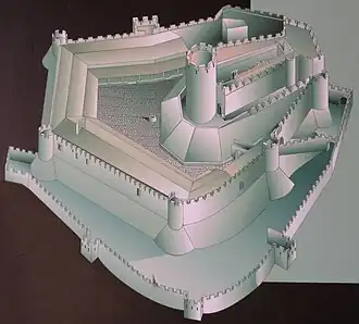 En el siglo XIII, se hicieron grandes ampliaciones, construyéndose un nuevo recinto soberano con una sala, la llamada sala gótica edificada enfrente la entrada principal y cubierta con una bóveda de cañón apuntada, un patio de armas con una torre cuadrada y un foso con un nuevo amurallamiento con dos torres cilíndricas angulares.