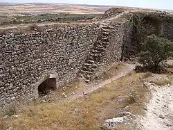 - A los veinte y nueve capítulos dixeron: que la dicha villa tiene una fortaleza, un cuarto de legua de la dicha villa, que se dice El Castillo de Almenara, que está en la sierra Jarameña en un cerro alto, que está entre el término de la dicha villa y el de la de Villamayor, que es de la Orden de Santiago, que tiene tres puertas principales. La primera está en la primera cerca, hacia poniente; y la otra junto al rebellín; y la otra en el cuerpo de la fortaleza.