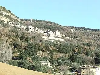 Vista de la entidad de población de Sant Miquel de la Vall con el castillo al fondo.