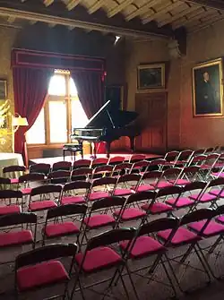 Sala de Concierto y piano Steinway del château de La Verrerie.
