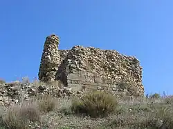 Rodeaba la fortaleza en la parte superior un muro con un grosor de 2 metros y una altura máxima de 1,50, de los que se conservan 30 metros de longitud al Sur y al Este, así como un cubo, el cual está muy amenazado por la erosión de la ladera del cerro, al haber sido empleada su arcilla desde principios de siglo para la elaboración de tejas y ladrillos.