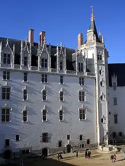 - La Gran Casa: realizada por Francisco II, este edificio era un lugar de residencia para el duque de Bretaña y su corte. Edificado bajo el reinado de Ana, duquesa de Bretaña y reina de Francia, los tragaluces atestiguan con su decoración esculpida la unión de Bretaña a Francia: los puercoespines de Luis XII dan la cara a los galgos de Ana.[6] Los tragaluces son de estilo gótico flamígero.