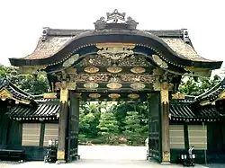 - Karamon (唐門?).- Portón ornamental con un gablete de estilo karahafu, esto es, redondeado al centro.