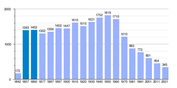 | Gráfica de evolución demográfica de Castrejón de la Peña[9] entre 1842 y 2021 |