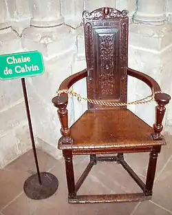 En el siglo XVI, la ciudad de Ginebra se convirtió al protestantismo bajo el liderazgo de Juan Calvino, uno de los reformadores más influyentes durante la reforma protestante. En 1535, la catedral fue transformada en un templo protestante. Se prohibió la misa, se destruyeron los ornamentos católicos como las imágenes, estatuas, pinturas y cuadros. Las campanas de la catedral, que estaban desde la época medieval, fueron retiradas y fundidas. El altar mayor fue sustituido por un púlpito central para la predicación. De esta manera se instauró de forma permanente el culto calvinista en la catedral. El obispo de Ginebra Pierre de La Baume, junto con todos los sacerdotes, fueron expulsados de la ciudad. La sede episcopal de la Diócesis de Ginebra tuvo que trasladarse a Annecy.