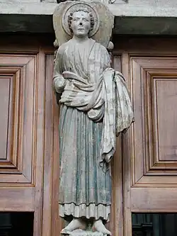 El conjunto de la estatuaria en piedra, excepto la estatua decapitada de la Virgen con el Niño en arenisca del nártex, fue en cambio bien conservado. Quedan importantes fragmentos de la policromía arquitectónica en el interior (especialmente en la capilla de la Virgen) y ante todo en las figuras del «portail peint» ('portal pintado') (siglo XIII), cuya restauración se completó en 2007.