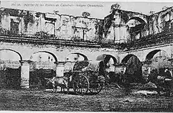 En 1918, tras los terremotos que devastaron la Ciudad de Guatemala, Herbert J. Spinden, corresponsal de la revista científica estadounidense National Geographic Magazine llegó a Guatemala y visitó la Catedral de Antigua Guatemala;[23] Spinden describió así el estado de la Catedral: «La fachada de la catedral mira hacia la plaza central de la ciudad y esconde una gran extensión de edificios destruidos. A través de una puerta lateral se ingresa a la nave principal en ruinas y se pasa debajo del domo central donde los pilares están ricamente adornados por ángeles y relieves en forma de laberinto; o bien, se puede subir al techo y caminar con dificultad sobre la vegetación que ha crecido sobre las vigas que une a las domos en forma de huevo.»[23]