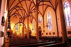 En los incendios de la ciudad de 1348, 1396 y 1460 el edificio de la iglesia original fue gravemente afectado. En 1478 la iglesia construida bajo los planes del arquitecto Hans Sturn añadió una nueva nave gótica tardía equipado con una cubierta doble. El coro actual se construyó alrededor de 1520. La iglesia se complementa además con la sacristía y un baptisterio.