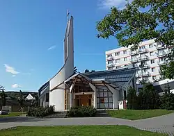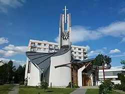 La primera piedra de la iglesia fue colocada en 1995 y fue consagrada en 2003 por el Papa Juan Pablo II. Sin embargo, la construcción no comenzó hasta la primavera de 2007, después de que se pudo emitir el permiso para construir en enero de 2007. El arquitecto del proyecto fue Ladislav Banhegyi. El techo fue construido en 2008. El trabajo en el interior duró hasta el verano de 2009. El 13 de junio de 2009 tuvo lugar la ceremonia de consagración, presidida por el Obispo Stanislav Zvolensky.