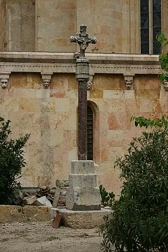 Cruz de término gótica perteneciente al Museo Diocesano, en el jardín