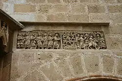 Sobre las otras dos puertas laterales también se encuentran dos rosetones de tamaño más reducido y de factura románica. Están realizadas las puertas en mármol blanco con arcos de medio punto y arquivoltas molduradas con dintel y tímpano. Empotrado en el muro sobre la puerta de la derecha se conserva el sarcófago de Bethesda, paleocristiano del siglo IV, representando escenas de la vida de Jesús.[19]​ La puerta del lado del evangelio, posee un tímpano esculpido con escenas que representan la Epifanía.