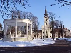 En 1761 los hermanos Hubert e Ignatius Admiring, miembros de la orden de los Escolapios de la Iglesia católica llegaron a Bjelovar. Solo encontraron una pequeña capilla por lo que decidieron construir una nueva iglesia.