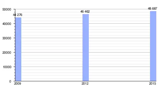 | Gráfica de evolución demográfica de Cavaillon entre 2009 y 2015 |