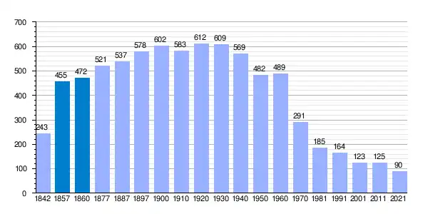 Gráfica de evolución demográfica de Cedillo de la Torre[1]​ entre 1842 y 2021