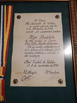 - ↑ «Celso Martín de Guzmán, en el recuerdo de todos los galdenses.». 5 de noviembre de 2014. Consultado el 27 de julio de 2020.