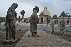 Esculturas de monjas en la entrada del Cementerio General de Santiago.