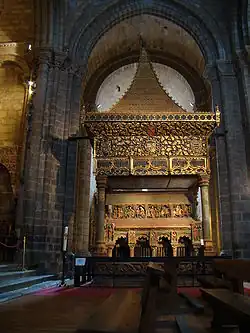 Cenotafio de los santos mártires bajo el arco toral de la Epístola en la basílica de San Vicente de Ávila. | ||