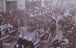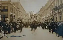 Gran procesión cívica formada por todos los elementos de la sociedad mexicana y marinos extranjeros, en la avenida San Francisco.